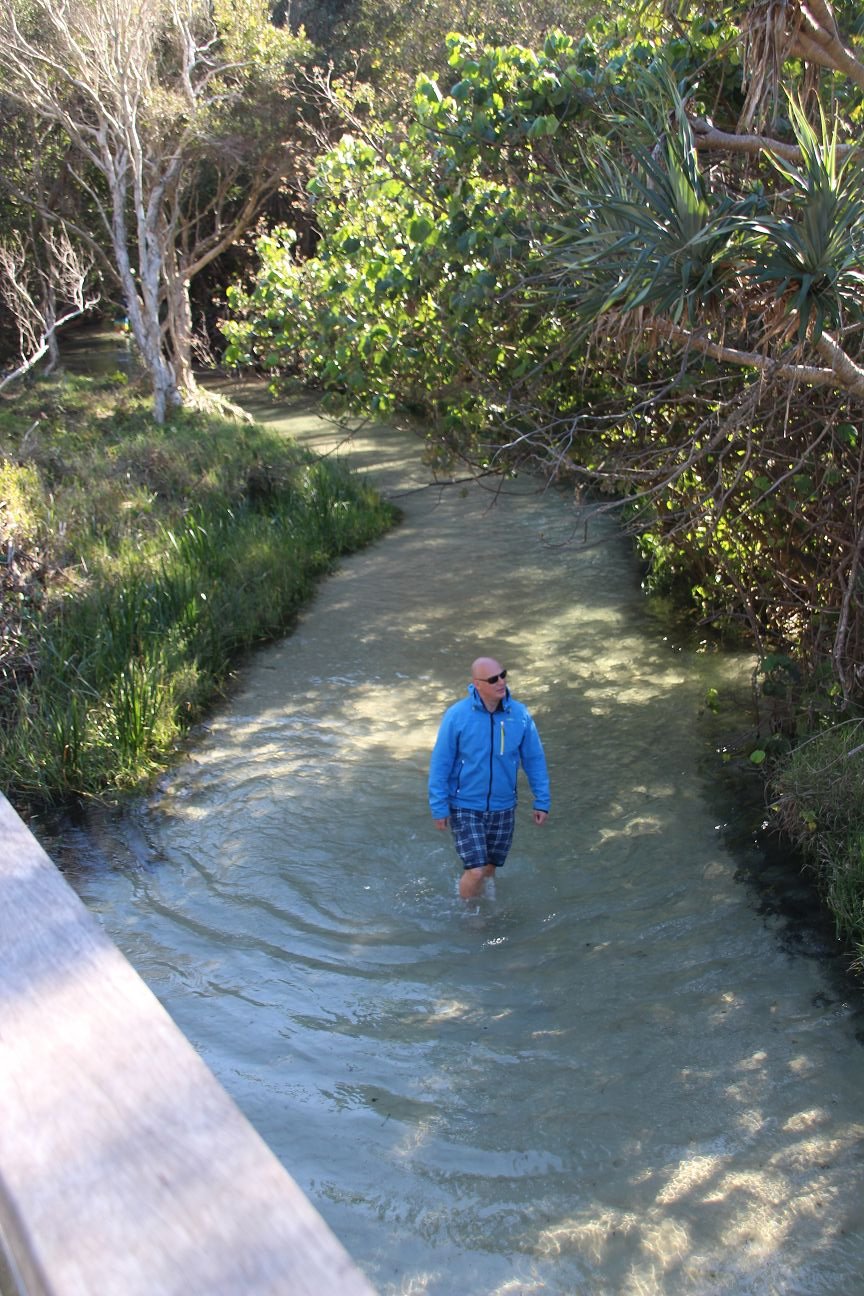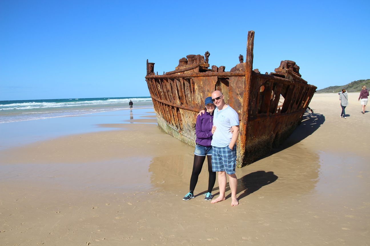 Die erste Station war Eli Creek, ein breiter, flacher Bach, der kristallklares Wasser führte. Anschließend sind wir zu einem Schiffswrack gefahren, dass die australische Marine zu Übungszwecken zu Schrott geschossen hat. Nach gefühlten drei Stunden und einer Fahrt quer über die Insel (es gibt dort keine geteerten Straßen, sondern nur Sandstraßen) haben wir dann die Perle der Insel erreicht: Lake McKenzie. Ein Süßwassersee der zum Baden einläd und karibisches Gefühl aufkommen lässt. Dort sind wir ein ein paar Minuten geschwommen und haben eine Stunde lang relaxt. Im Anschluss gab es australisches Buffet zu Mittag. Gegrilltes mit Variationen von verschiedenen Salaten. Typisch australisch ist übrigens Grillen (BBQ). Hier wird irgendwie immer und alles gegrillt. In fast jedem öffentlichen Park stehen kostenlose BBQ’s zur Verfügung. Man muss nur die Zutaten mitbringen und los geht’s. Wenn es also einen Weltmeister im Grillen gibt, dann sind es die Australier, wir kommen knapp dahinter.